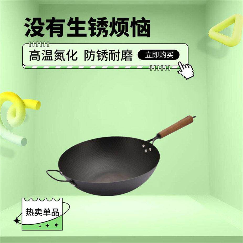 九阳铁锅无涂层炒锅家用炒菜锅不易粘锅电磁炉专用燃气灶旗舰店炊