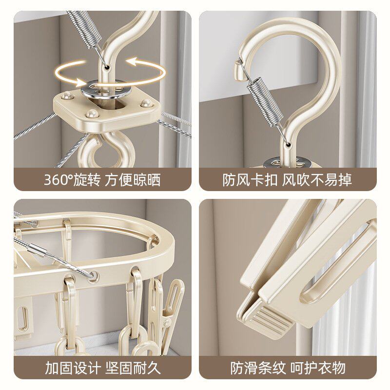 阳台晒袜子神器圆形多夹子晾衣架不锈钢多功能家用婴儿防风袜子架