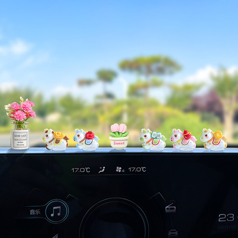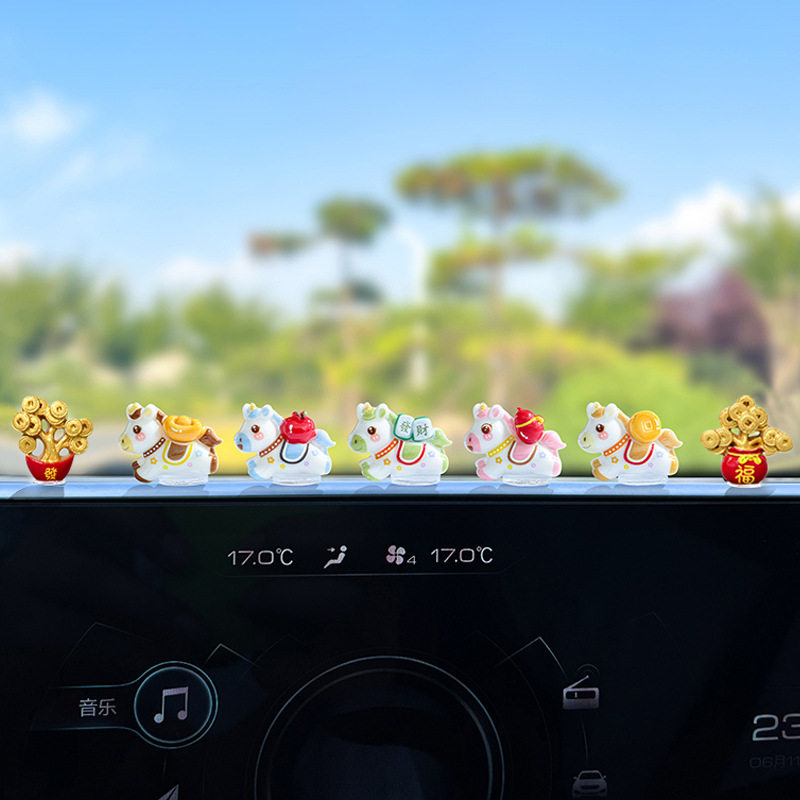饰品 萌趣可爱生肖马新年汽车摆件电动车内饰电脑工位车载中控台装