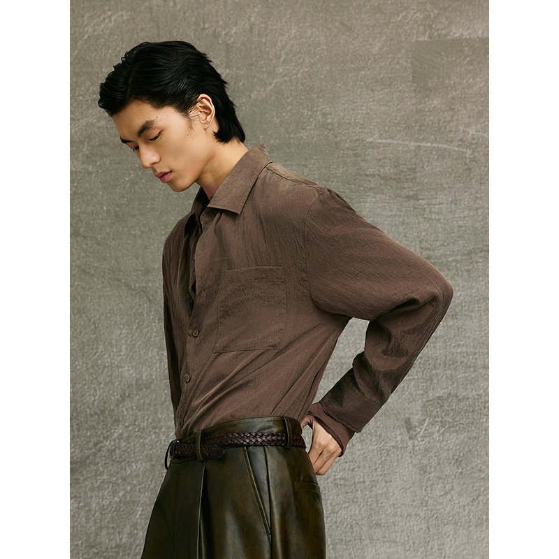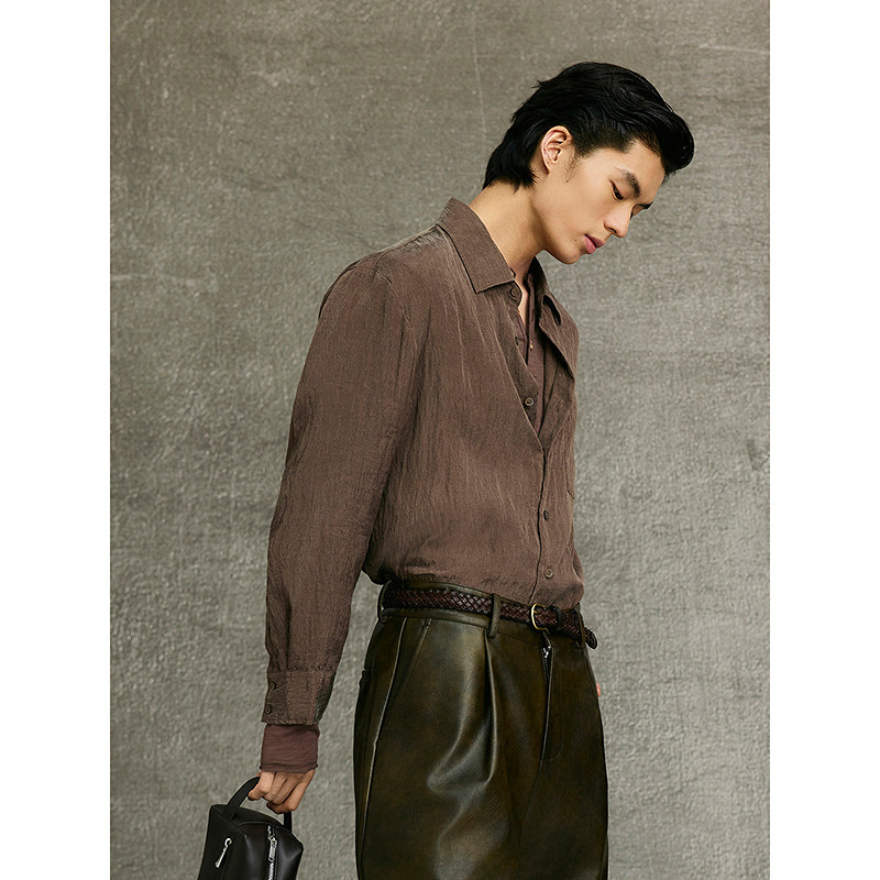 古巴领薄衬衫 马登工装 法式 复古磨毛长袖 衬衣男春 外套那不勒斯美式
