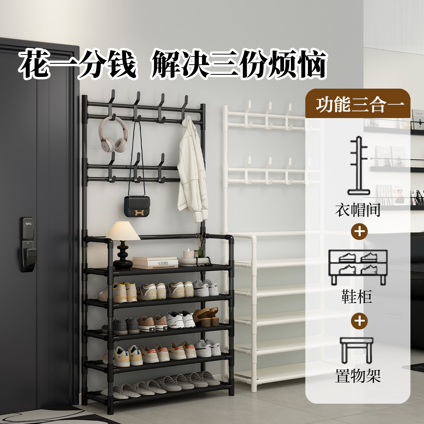 鞋 子收纳架入户大容量落地式 简易鞋 柜衣帽架一体 架多层家用门口鞋由