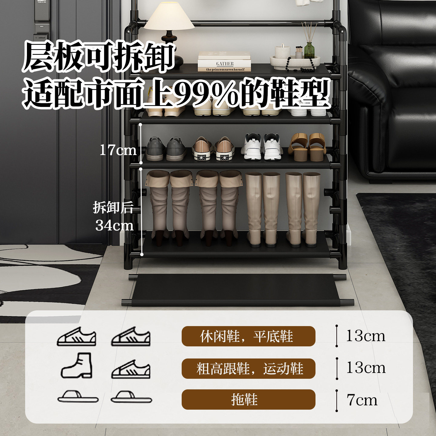 鞋 子收纳架入户大容量落地式 简易鞋 柜衣帽架一体 架多层家用门口鞋