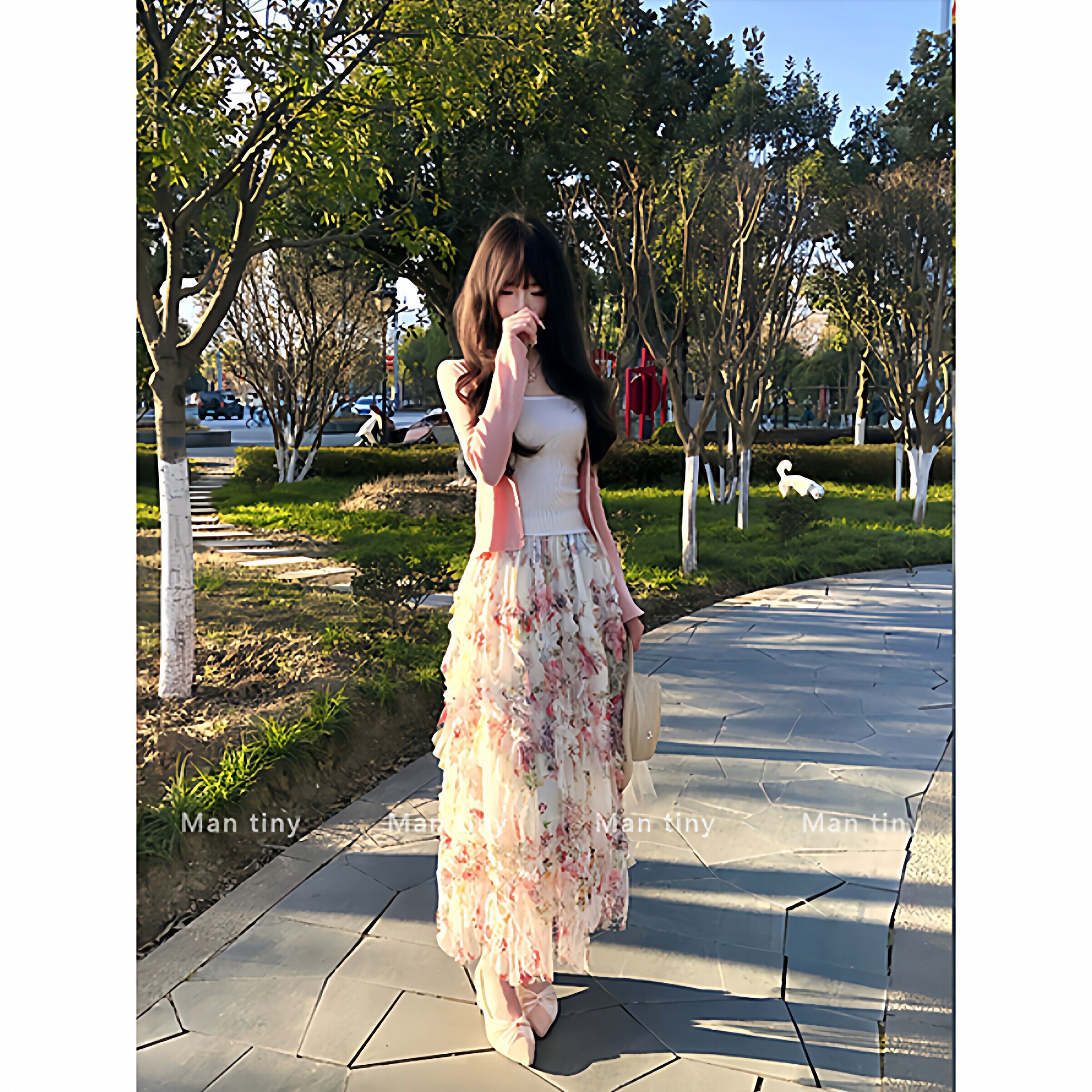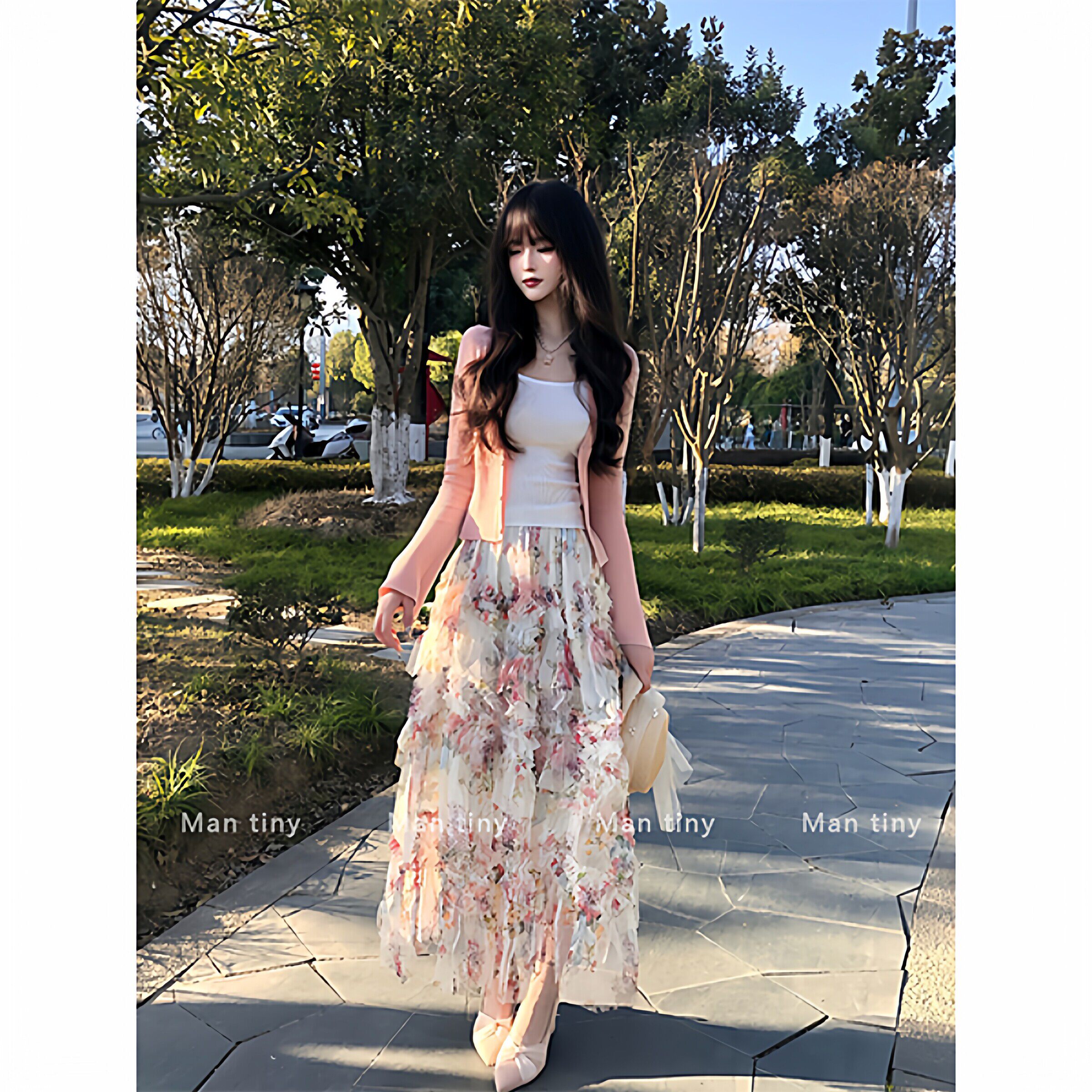 度假风蓬蓬连衣裙子 2026超火减龄一整套春天ootd穿搭韩系chic套装由
