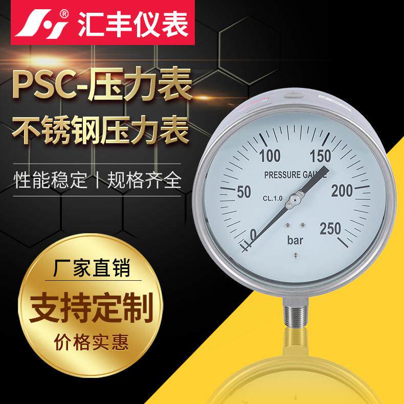 汇丰PSC 不锈钢压力表 厂家供应 量大从优250bar 安全压力表由