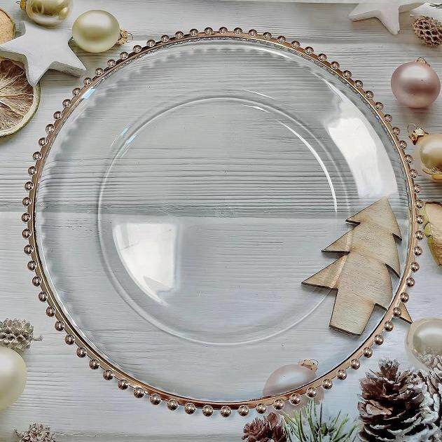 饰塑料盘charger plate 金珠婚庆酒店圆珠盘透明装 厂家直销烫金