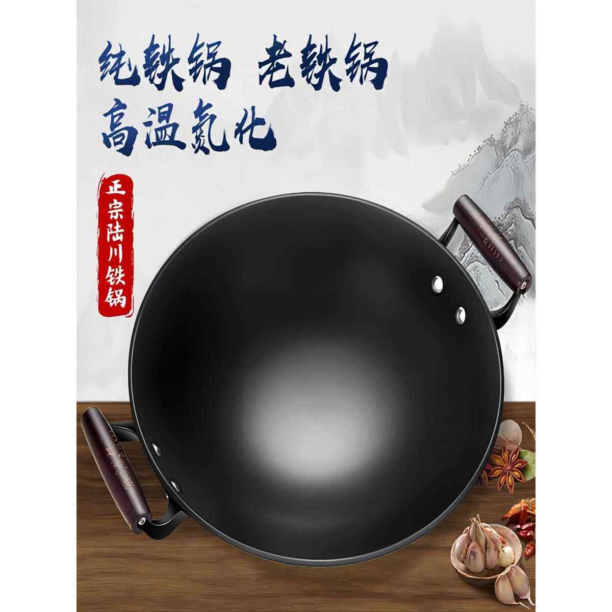 为您提供商品加厚铸铁锅生铁锅平底电磁炉圆底家用炒菜锅 正高陆川双耳铁锅老式的详细介绍,