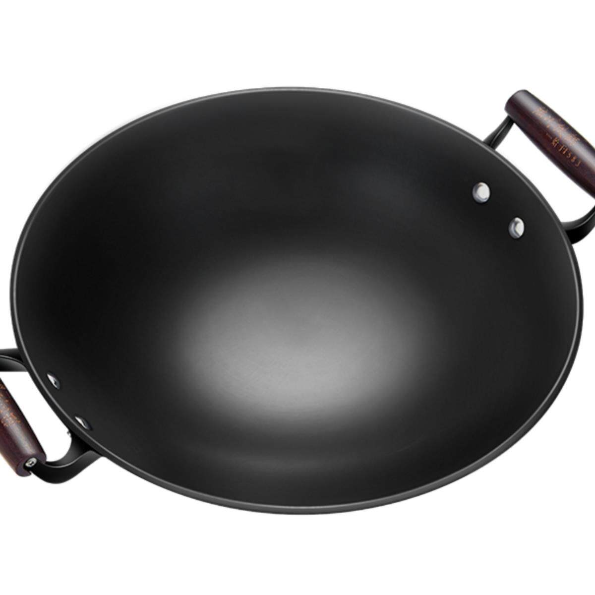 加厚铸铁锅生铁锅平底电磁炉圆底家用炒菜锅 正高陆川双耳铁锅老式