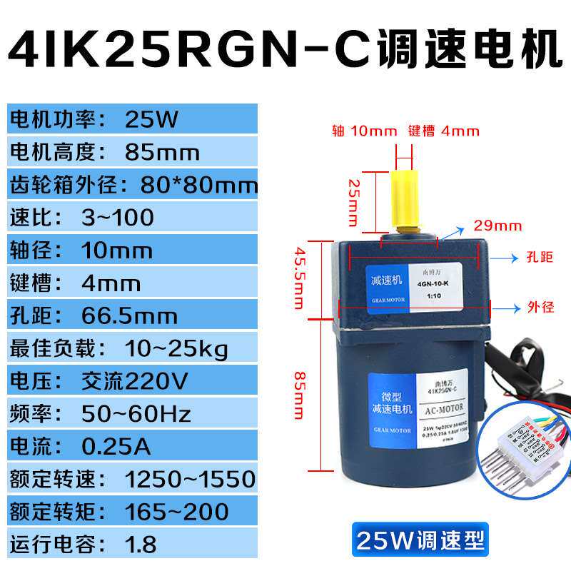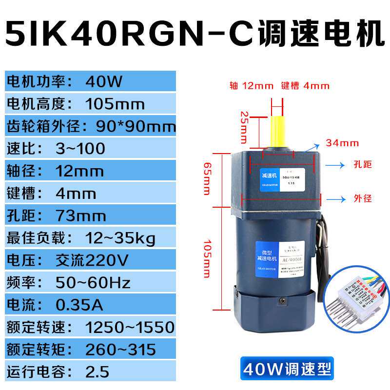 极速厂促齿轮减速调速马n达220V交流60W90W120W单相输送带调速马由