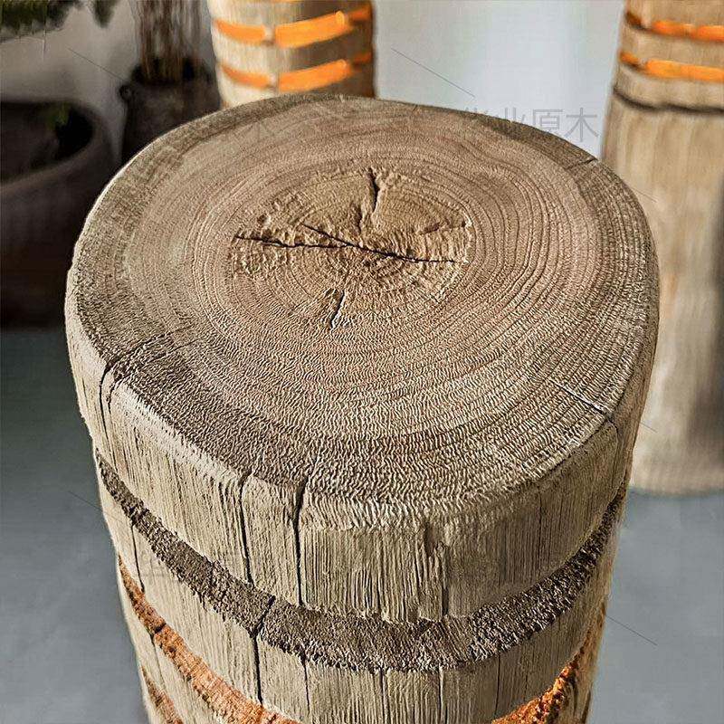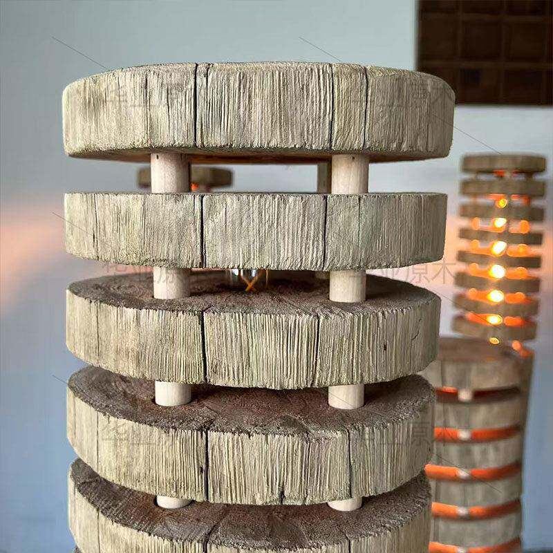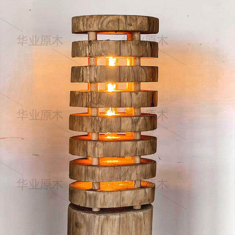 侘寂风整木风化落地灯民宿茶室禅意空心立式 饰灯 摆件灯客厅复古装