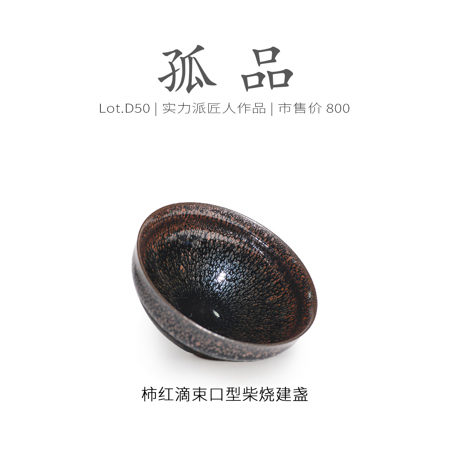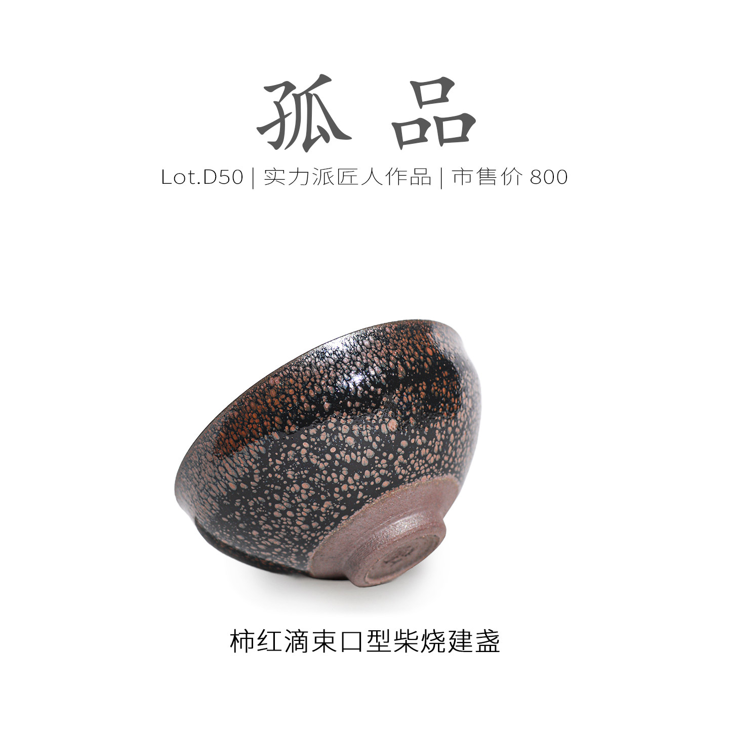 为您提供商品侘寂杯 高端茶杯 柿红滴束口型建盏主人杯茶盏 Lot.D50柴烧孤品的详细介绍,