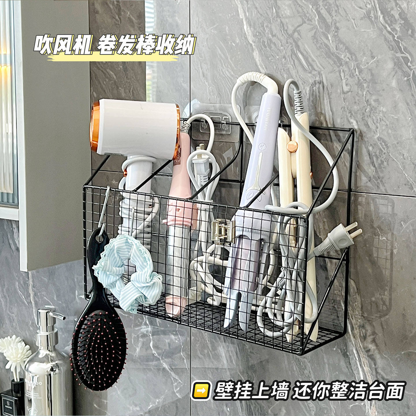支架挂篮 卷发棒收纳架卫生间吹风机免打孔置物架直发梳夹板壁挂式