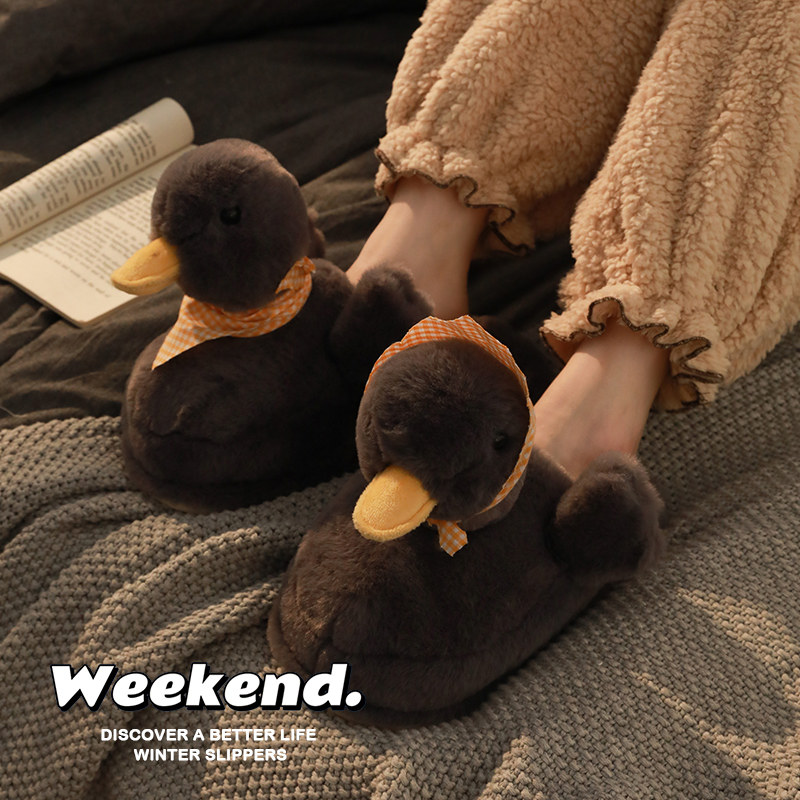 鸭子棉拖鞋 情侣家用保暖拖鞋 女冬季 厚底 女冬室内居家卡通网红拖鞋由