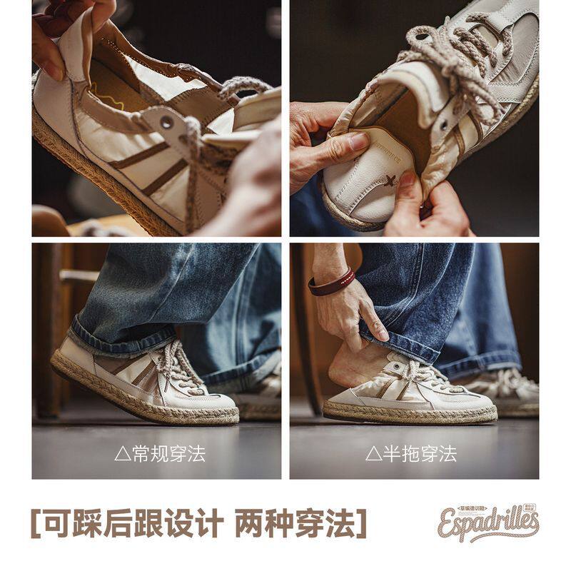 休闲透气布鞋 马登草编德训鞋 春夏季 半拖男士 渔夫鞋 板鞋 新款 潮薄款由