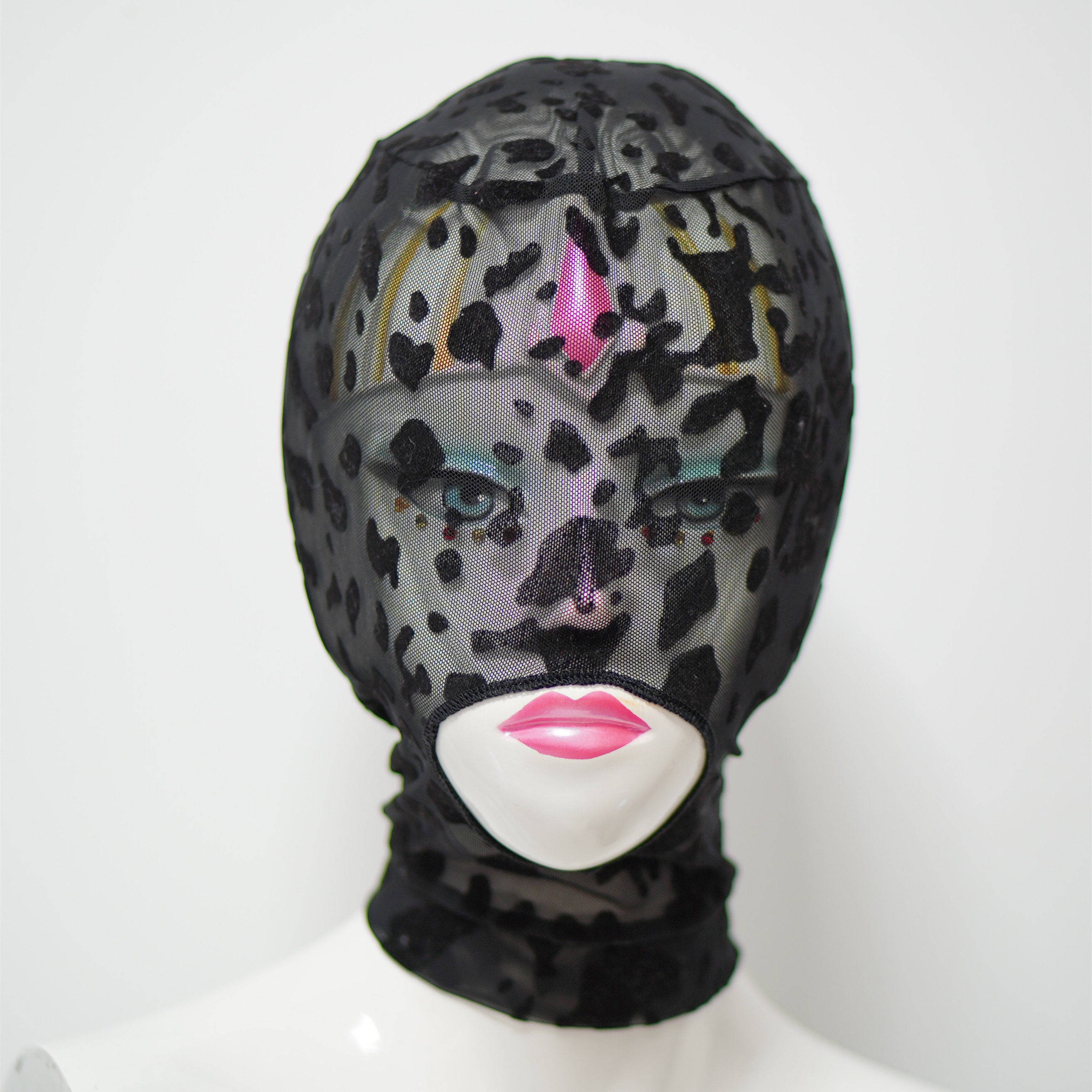 黑色斑点蕾丝蒙面头套弹力面罩全包面具漏嘴女戴角色性感cos演出由