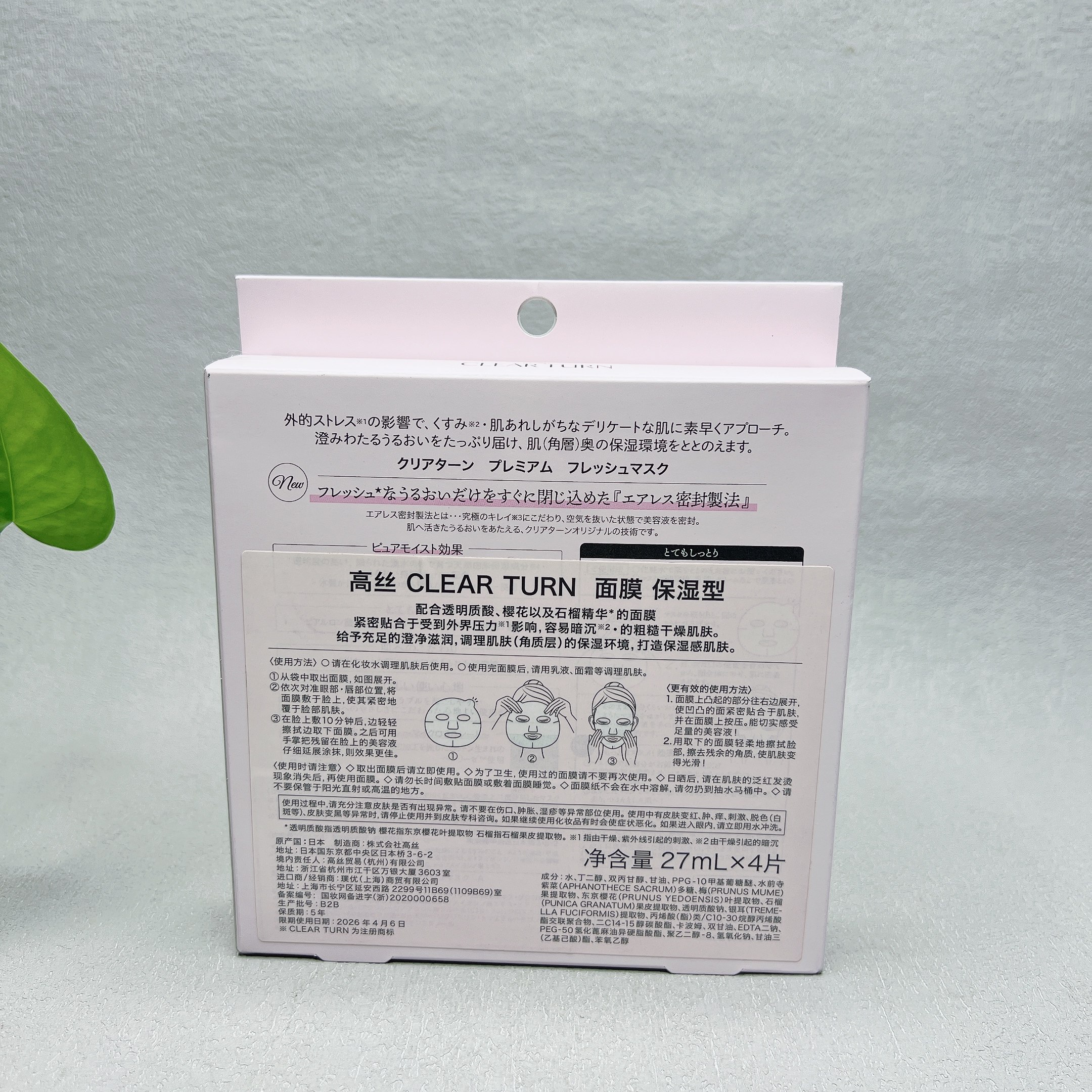 面膜4片装 面部补水护肤至4月6日 日本热销品牌保湿 临期由