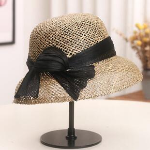 春夏法式 赫本风优雅大檐灯罩盆帽0330d 镂空透气咸草遮阳帽女夏季