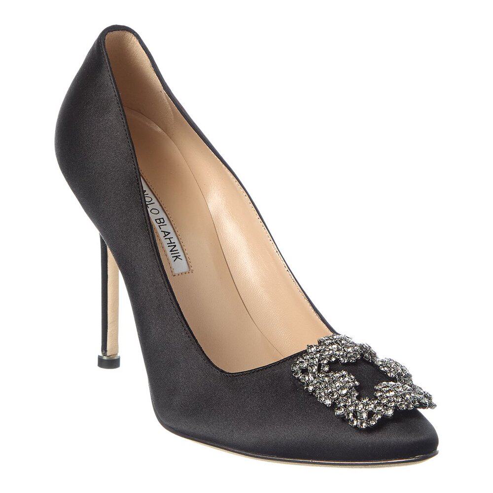 100 Hangisi Blahnik 美国奥莱直 Pump black Satin 自营Manolo由