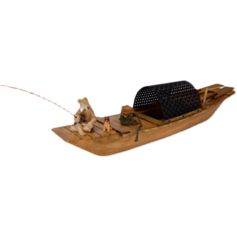 饰工艺品鱼缸水池造景摆件绍兴乌篷船 小木船模型可下水漂浮复古装