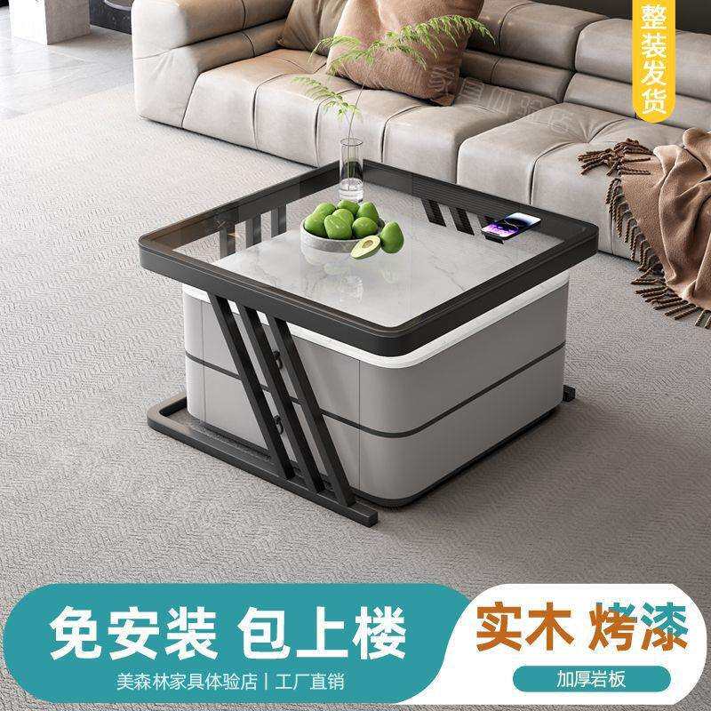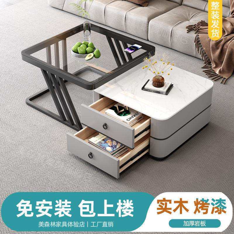 fLE玻璃岩板茶几家用客厅小户型意式 网红 轻奢小桌子简约现代新款