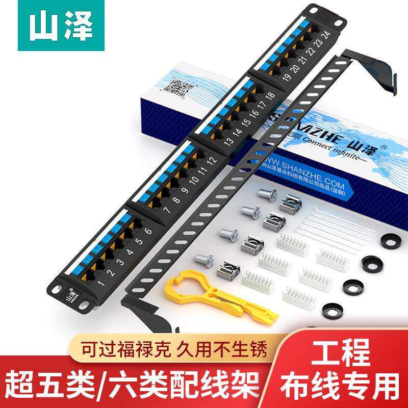 山泽配线架超五类六类24口48口镀金1U19寸加厚网络机柜配线器满配由