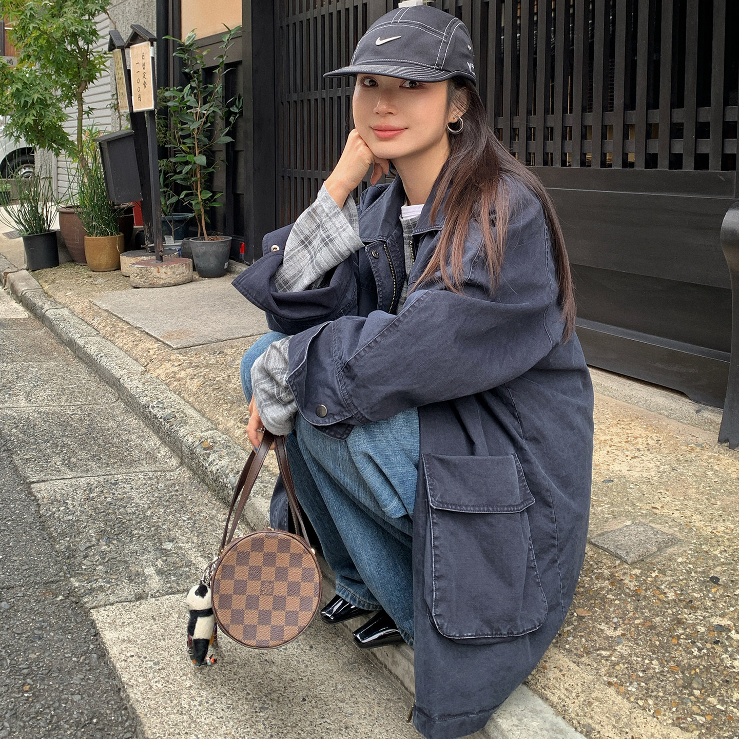 7AM10PM 风阔型夹棉风衣 个性 大口袋宽松薄棉外套 藏青色复古工装由