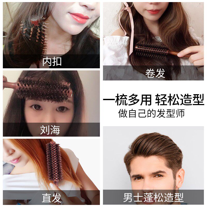 为您提供商品梳子卷发梳女猪鬃毛木梳滚梳子女内扣刘海蓬松直美发廊造型男的详细介绍,