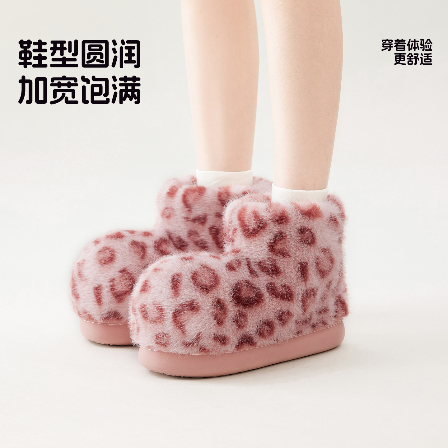 chikoku豹富毛毛短靴女豹纹冬季 男 雪地靴情侣居家外穿厚底棉拖鞋由