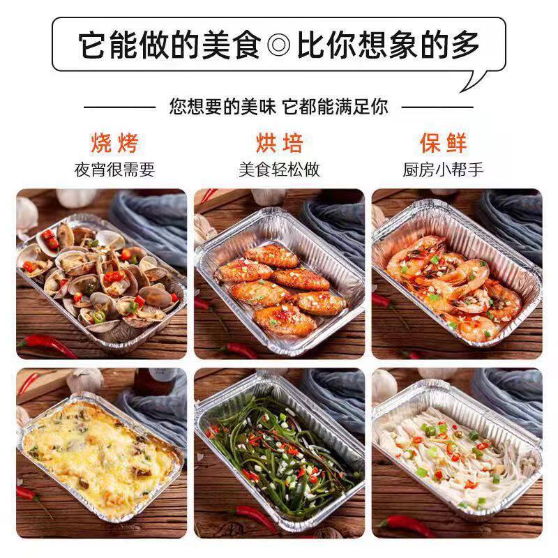 1000只加厚商用批发锡纸盒长方形带盖子锡纸碗锡纸盘打包盒烧烤由