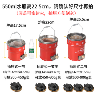 万家新款 一二节烤火取暖炉围炉煮茶全套碳炉家用炭火炉 炭炉抽屉式