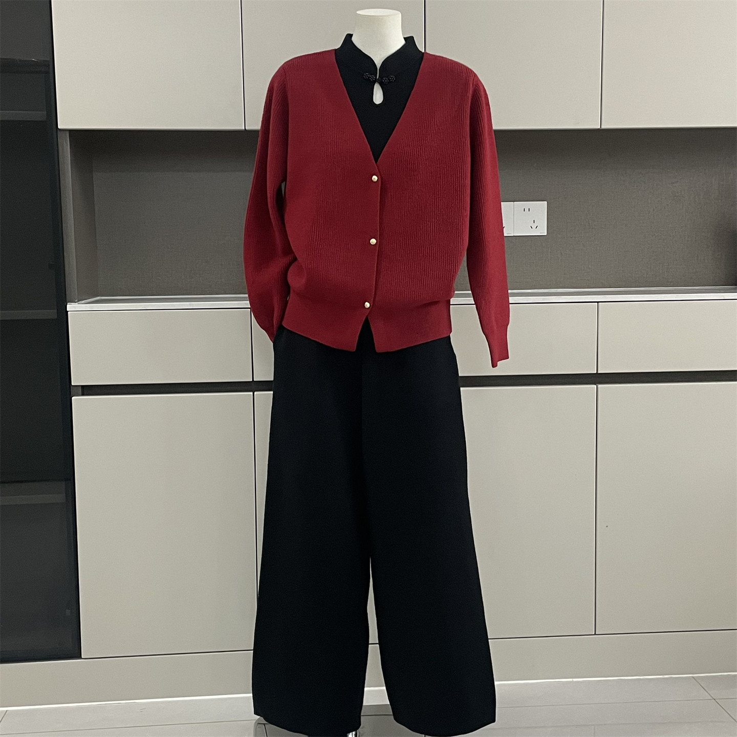 春秋季 2026款 妈妈装 假两件中老年女装 毛衣套装 休闲针织衫 中式 时尚