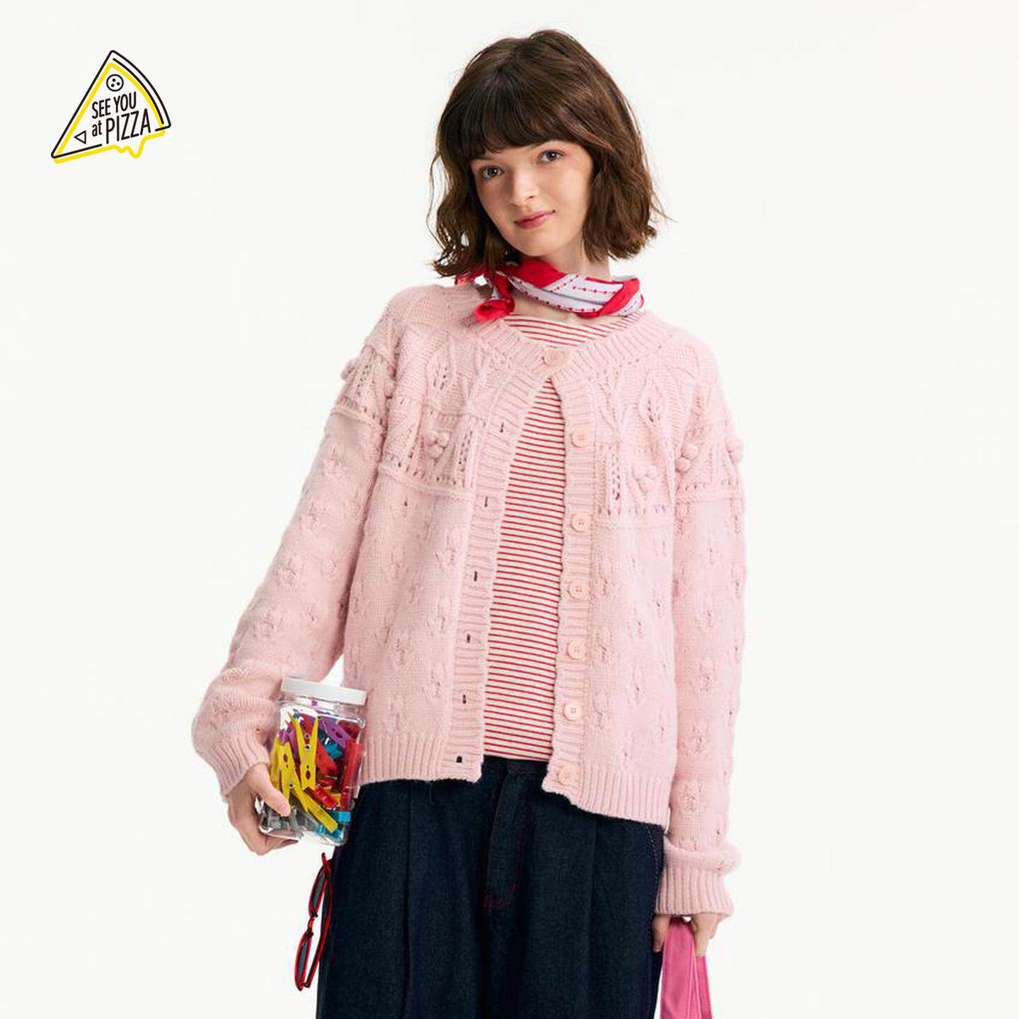 PIZZA 618520 SEE 新款 甜美镂空开衫 女2025冬季 YOU 针织衫