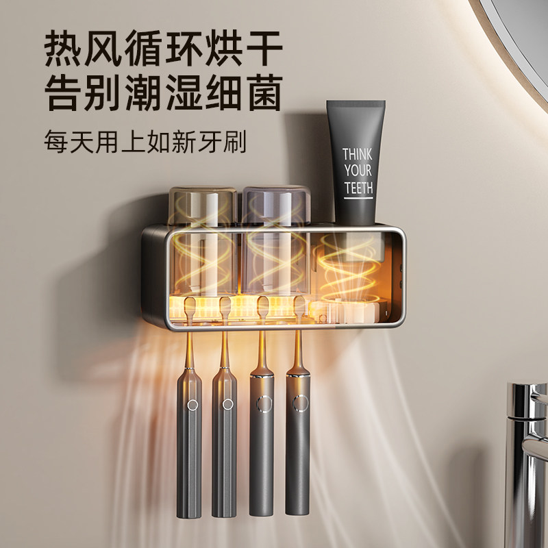 智能电动牙刷消毒器烘干杀菌杯子置物架漱口杯壁挂卫生间双人轻奢