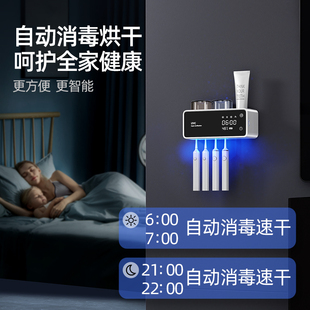 智能电动牙刷消毒器烘干杀菌杯子置物架漱口杯壁挂卫生间双人轻奢由
