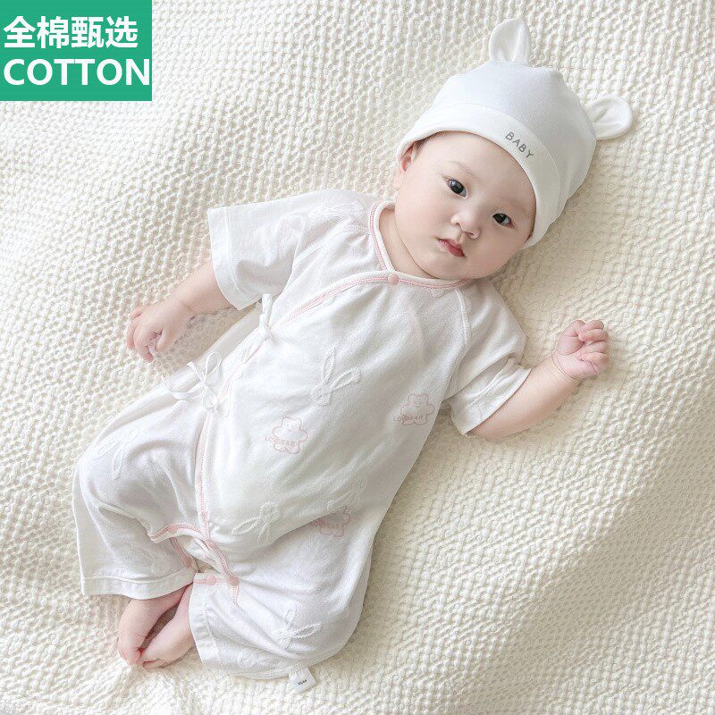 蝴蝶哈衣宝宝护肚薄款 和尚 连体衣莫代尔短袖 全棉母婴纯棉婴儿夏季