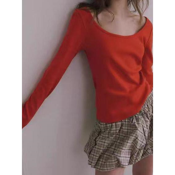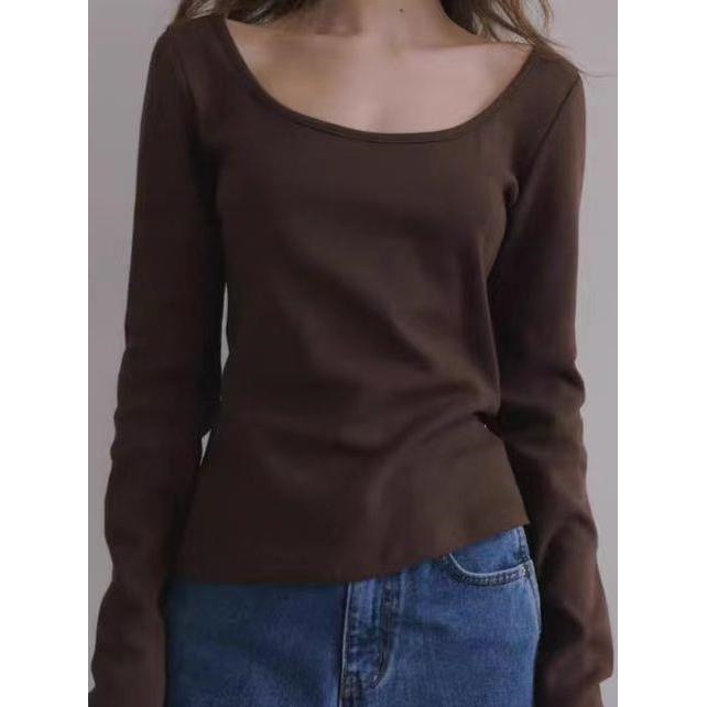 修身 T恤 长袖 shell韩国小众一字肩内搭打底衫 现货 theBarnnet