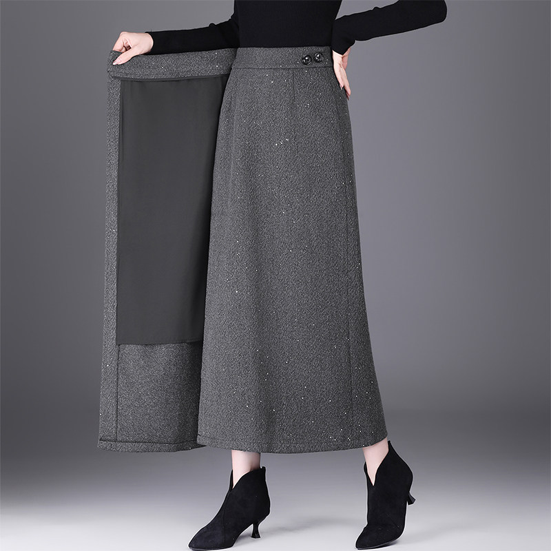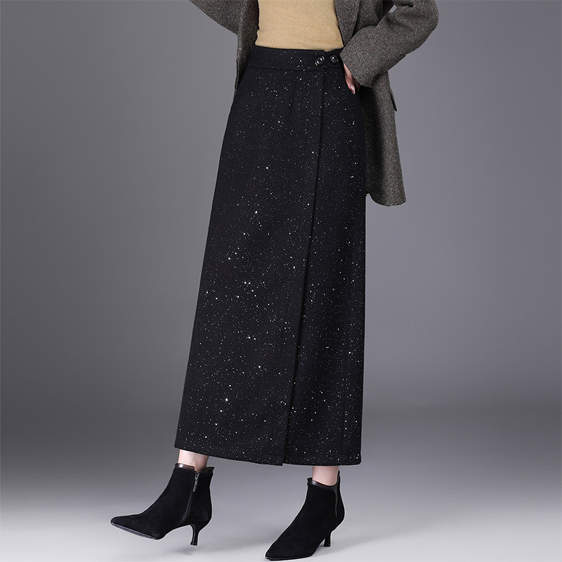 为您提供商品开叉长裙围裹式 遮胯亮片直筒裙 毛呢半身裙女秋冬2025年新款 一片式的详细介绍,