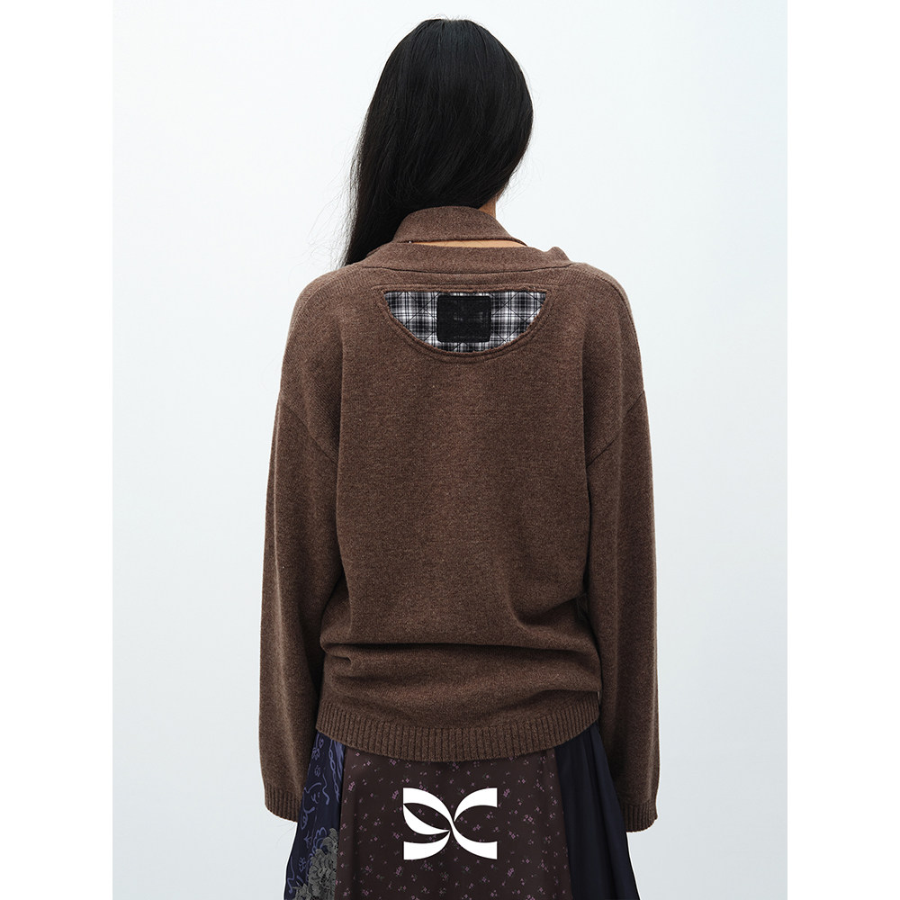 方圆羊毛复古格纹菱格V领穿绳飘带慵懒感毛衣开衫 CIRCLE SQUARE由