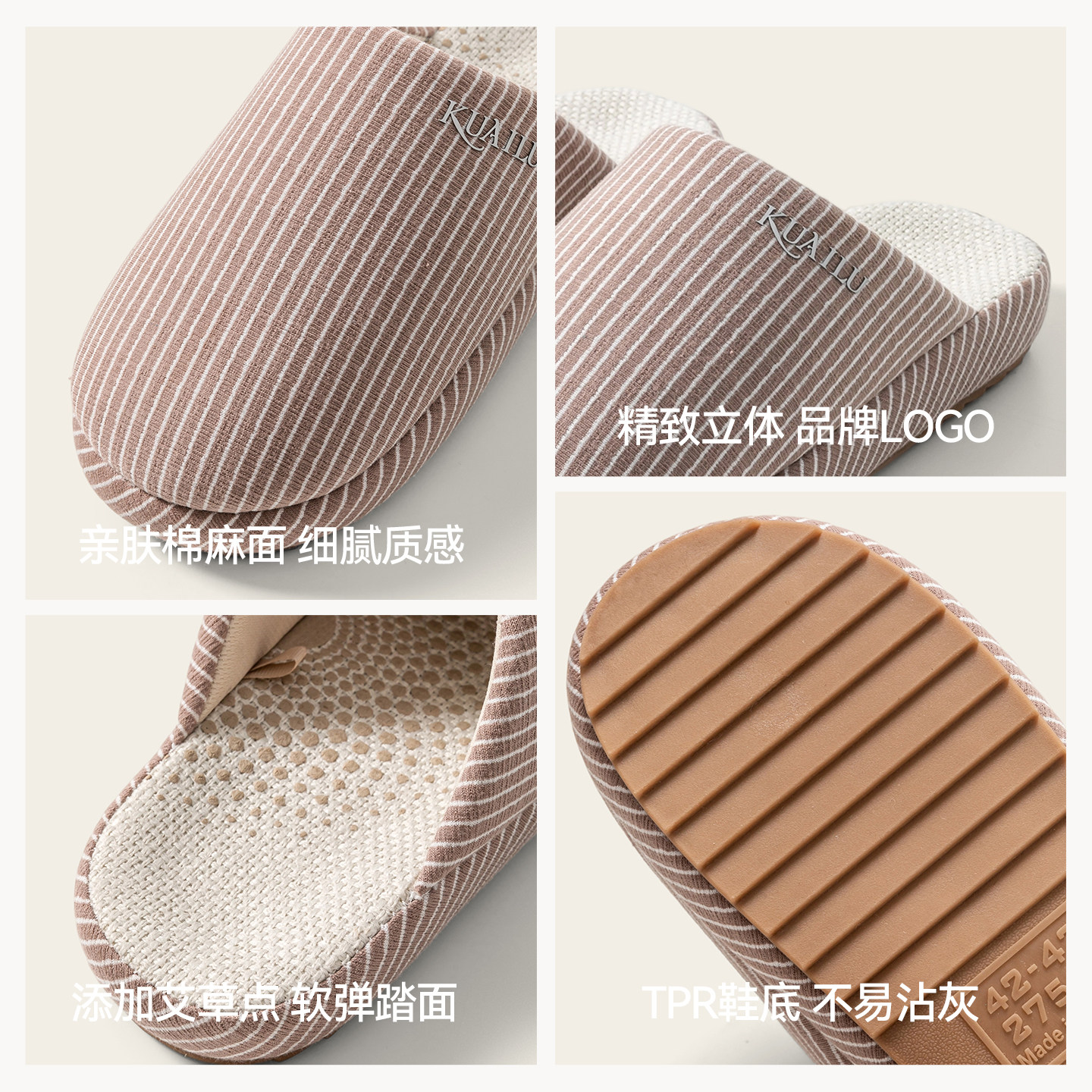 为您提供商品快鹿艾草棉麻拖鞋 新款 室内家居简约防滑静音家用拖鞋 男 女士秋冬季的详细介绍,