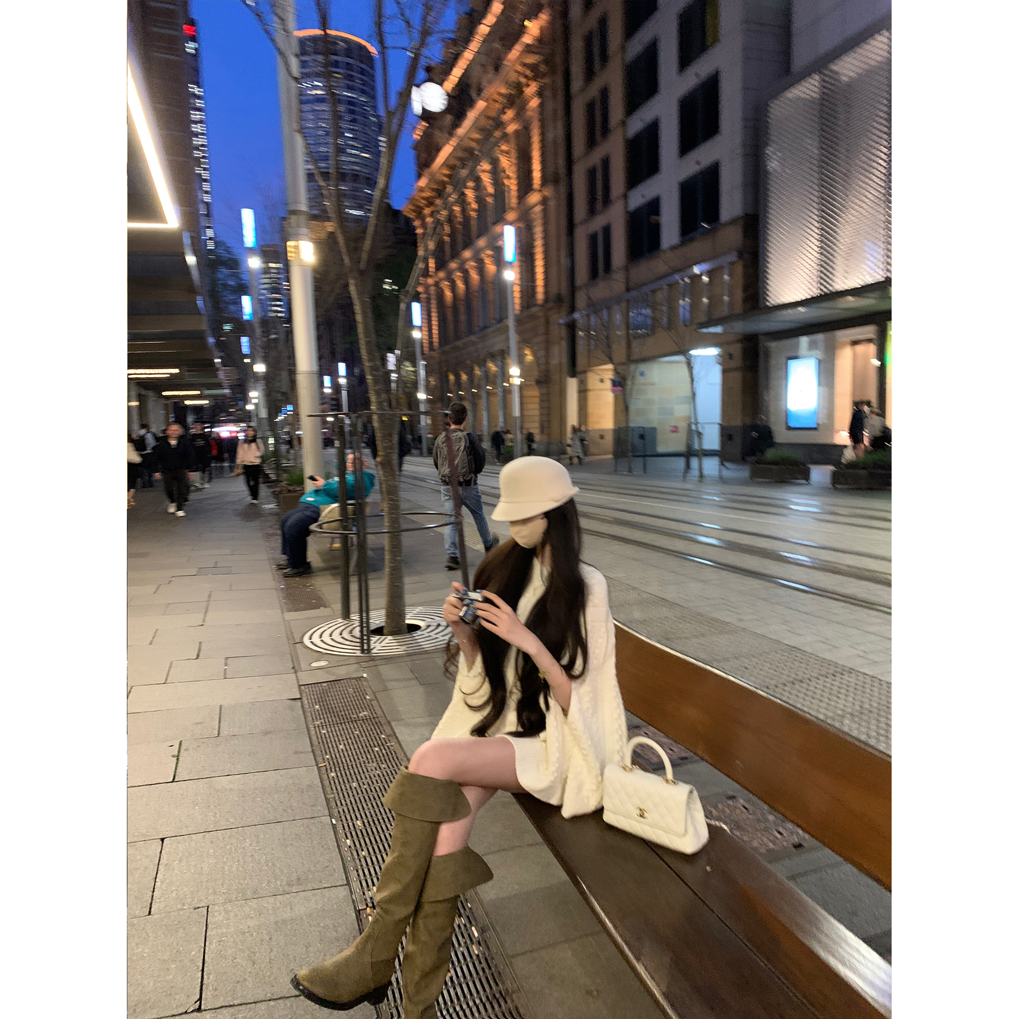 aaaaxbbb 风 羊毛针织开衫 外套V领吊带上衣纽扣圆领两件套 春禾季