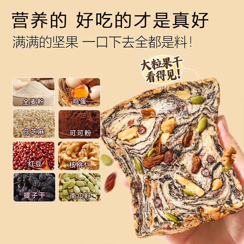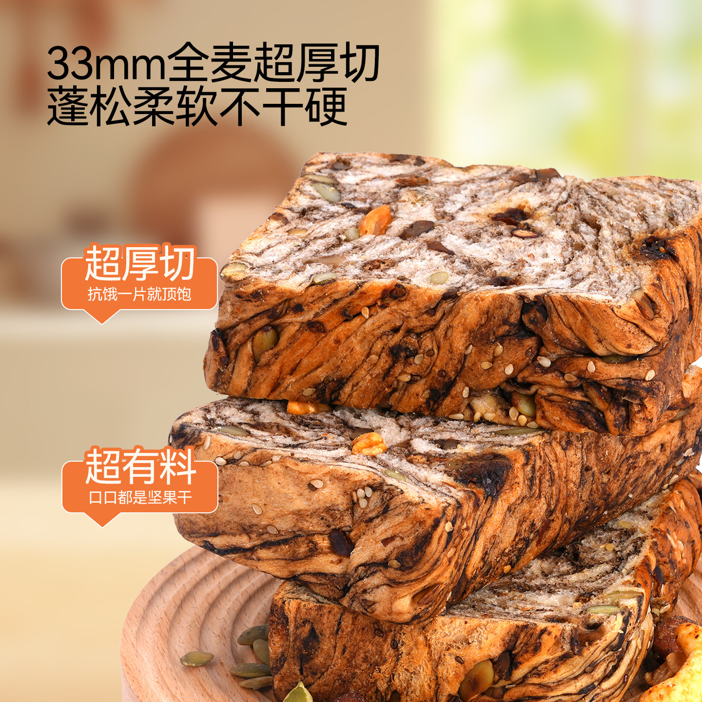 全麦坚果厚切吐司面包早餐整箱手撕代餐无添糖减速食肥专用零食品