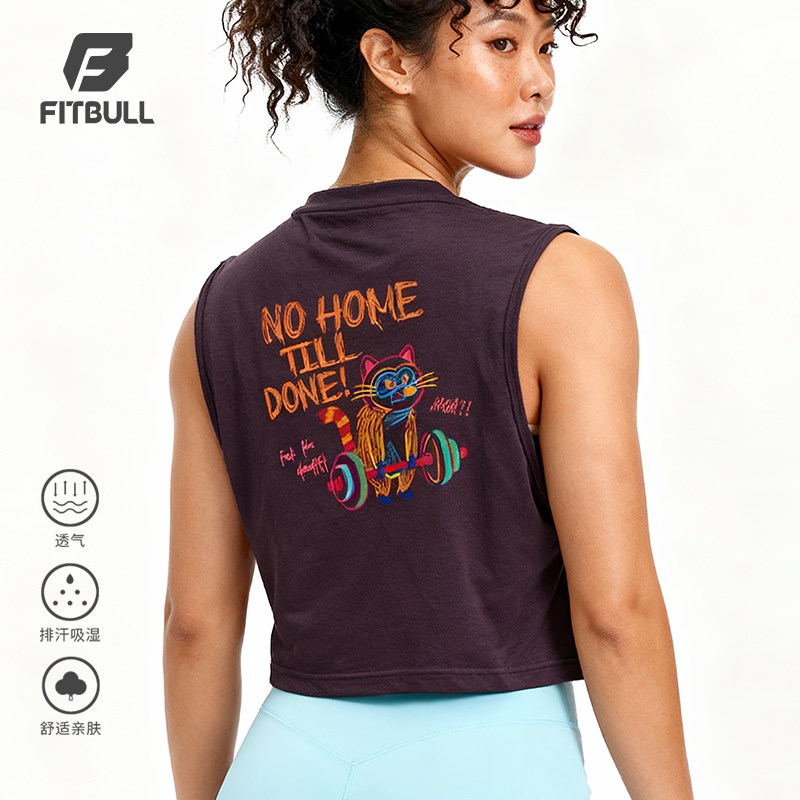 为您提供商品FITBULL女子背心小浣熊卡通图案CF专用莫代尔健身跑步瑜伽运动T恤的详细介绍,