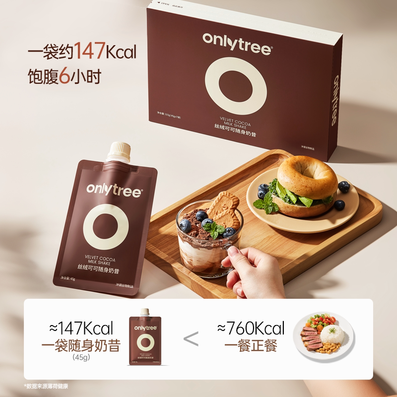 onlytree丝绒可可随身奶昔代餐奇亚籽饱腹轻食营养早晚餐冲饮袋装由