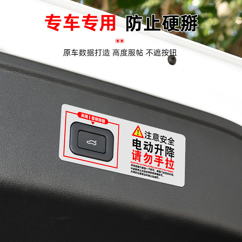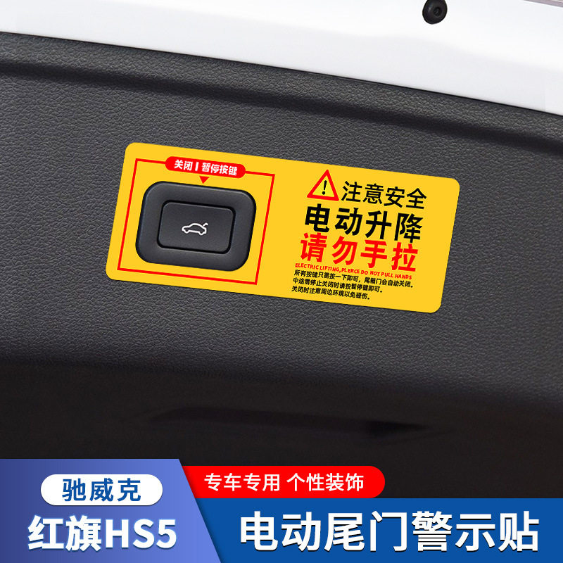 为您提供商品红旗HS5电动尾门警示贴HS7 H9后备箱按键开关提示贴纸请勿手拉的详细介绍,