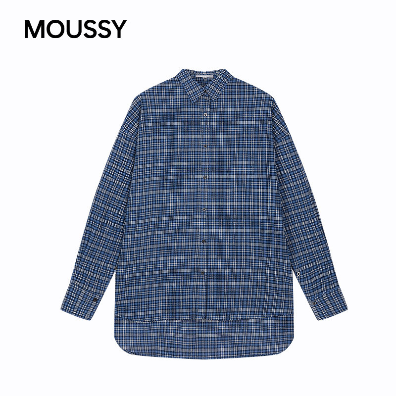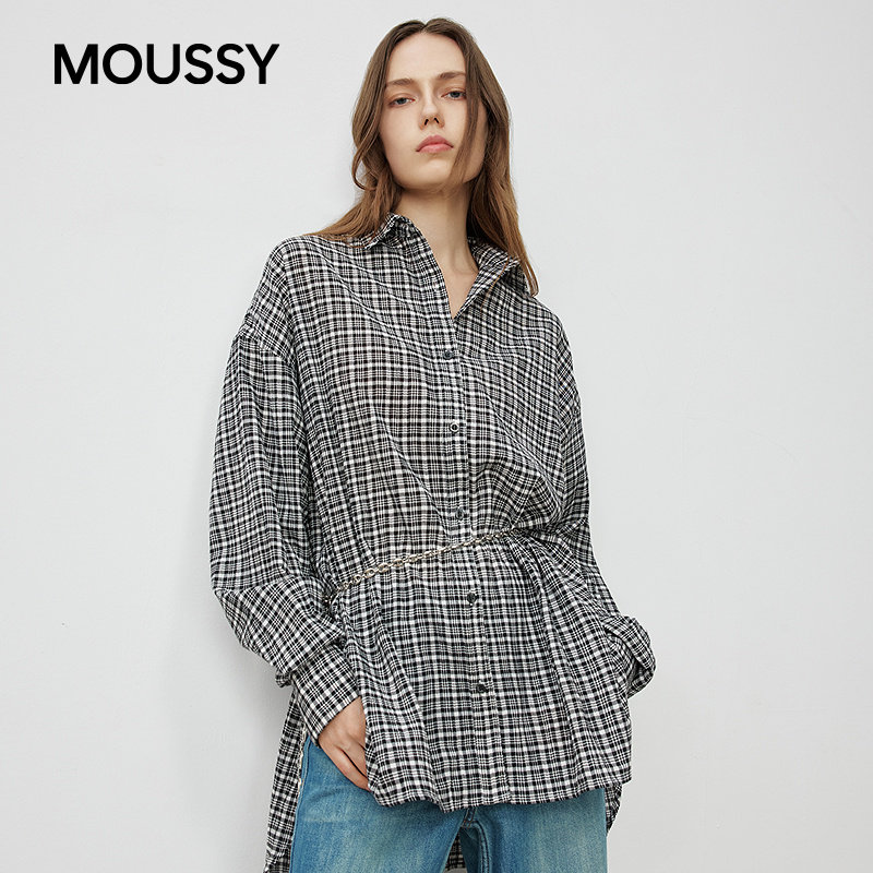028IAA30 moussy 1024 衬衫 子撞色宽松休闲长袖 25春季 复古风格由