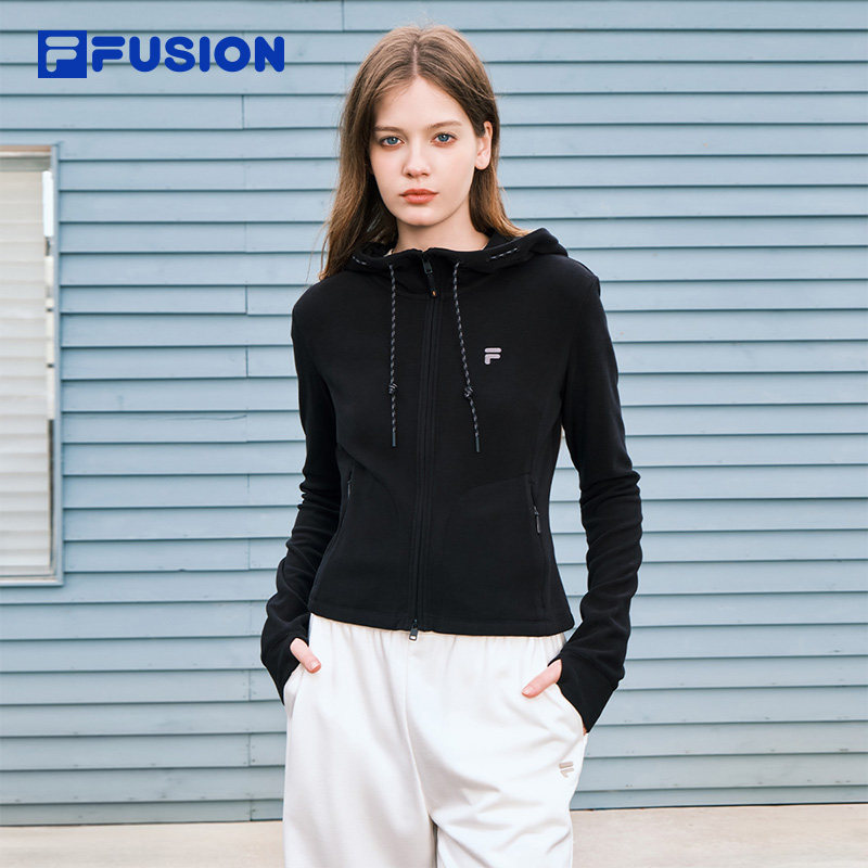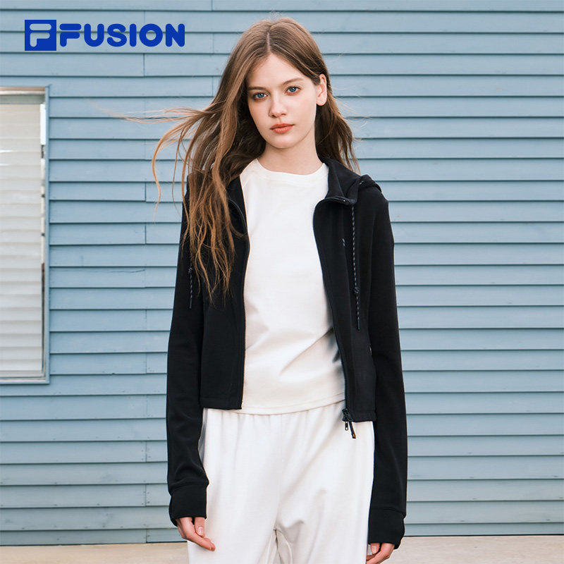 简约修身 显瘦保暖上衣 FUSION斐乐潮牌针织连帽外套女26春季 FILA由