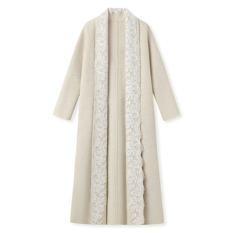 新中式 收腰毛呢外套巨好看套装 中长款 外套 蕾丝羊毛双面呢大衣法式