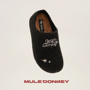 保暖毛毛鞋 多嘴驴Donkey毛绒勃肯鞋 女款 冬季 一脚蹬黑色厚底棉拖鞋由