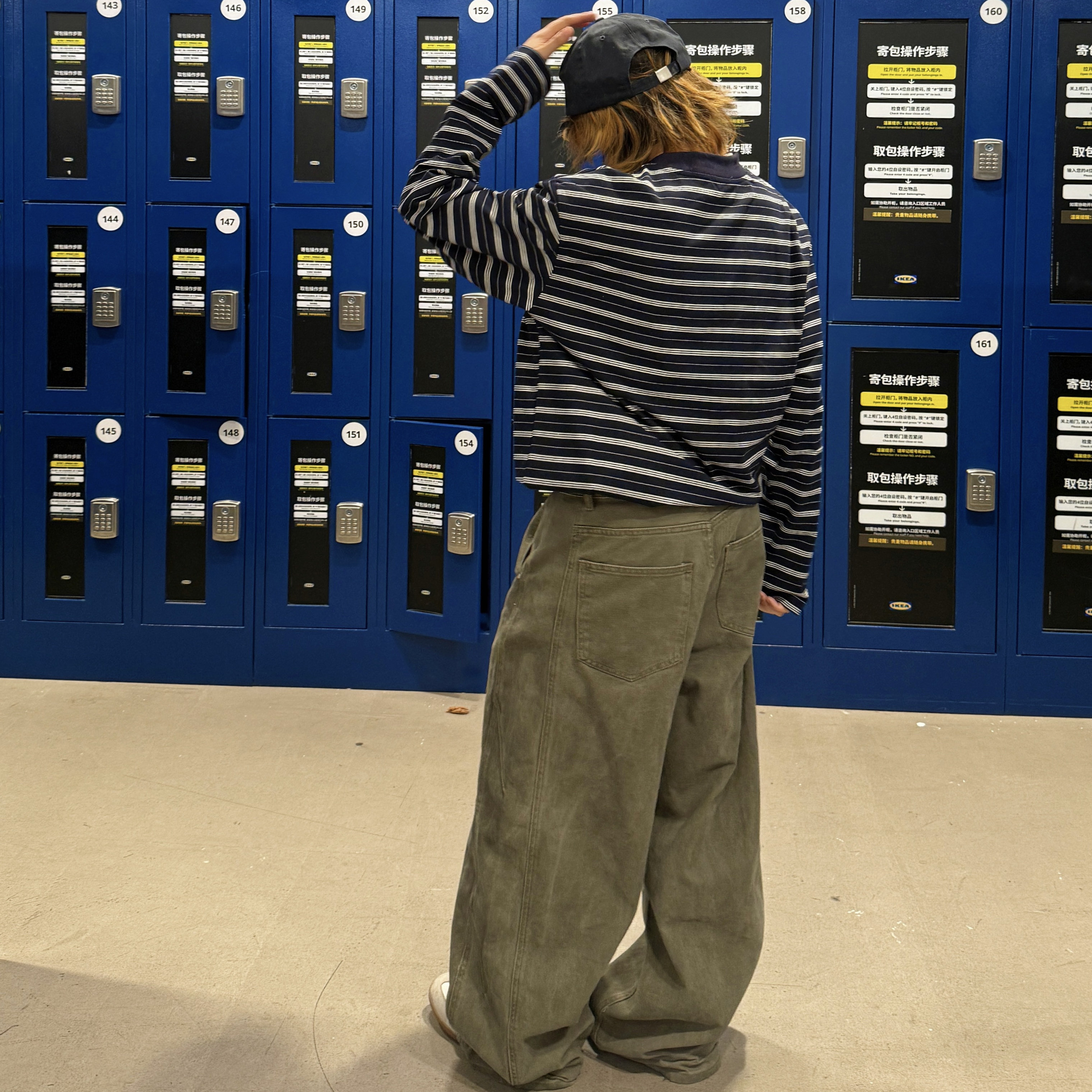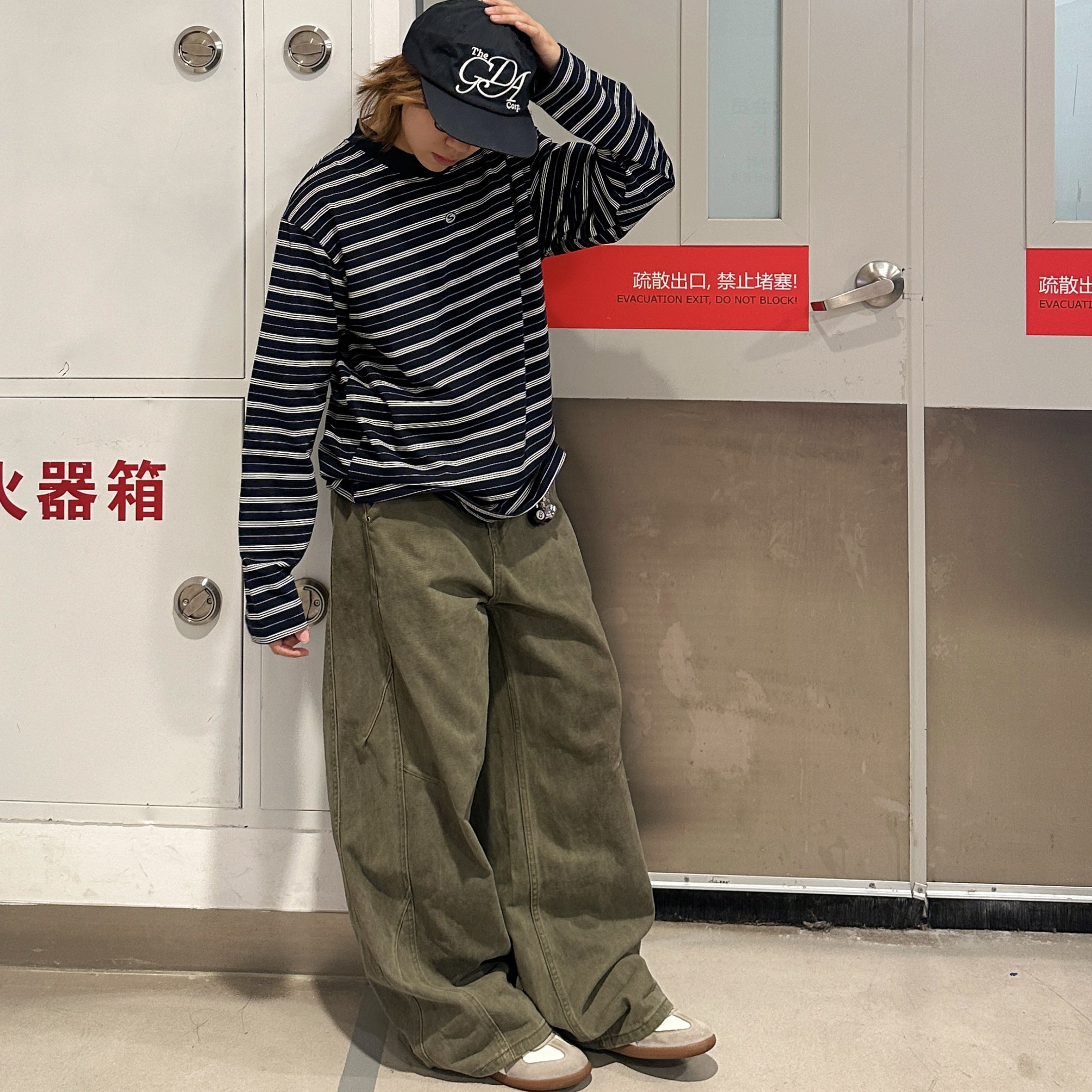 复古条纹套头圆领长袖 T恤男宽松休闲百搭情侣上衣 alien美式 Soga
