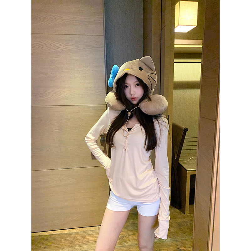 T恤秋修身 正肩内搭上衣 半开领纽扣长袖 MosesQueen魔西女王美式由