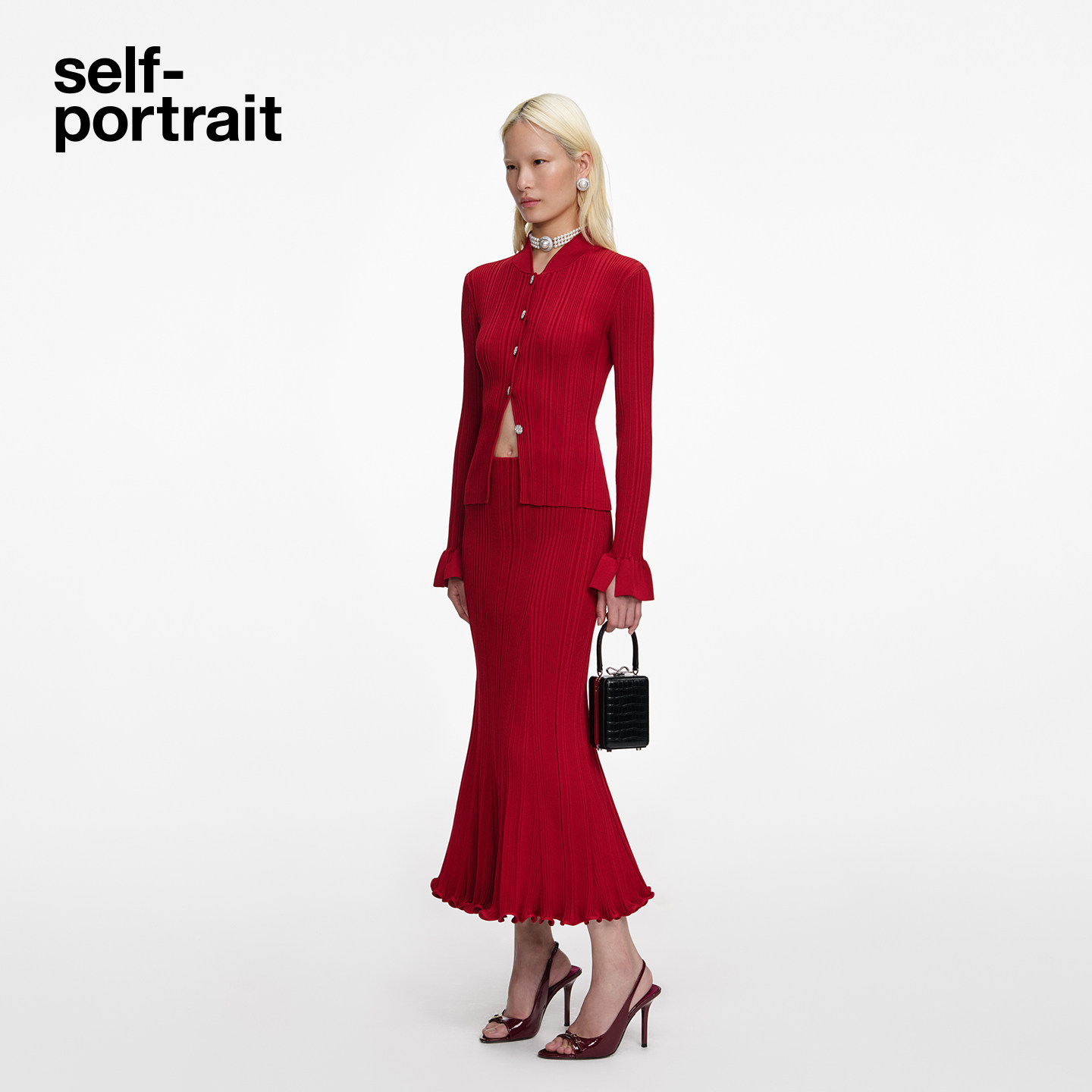 为您提供商品酒红色钻饰新中式 self portrait 2026早春新款 上衣新年 针织开衫的详细介绍,